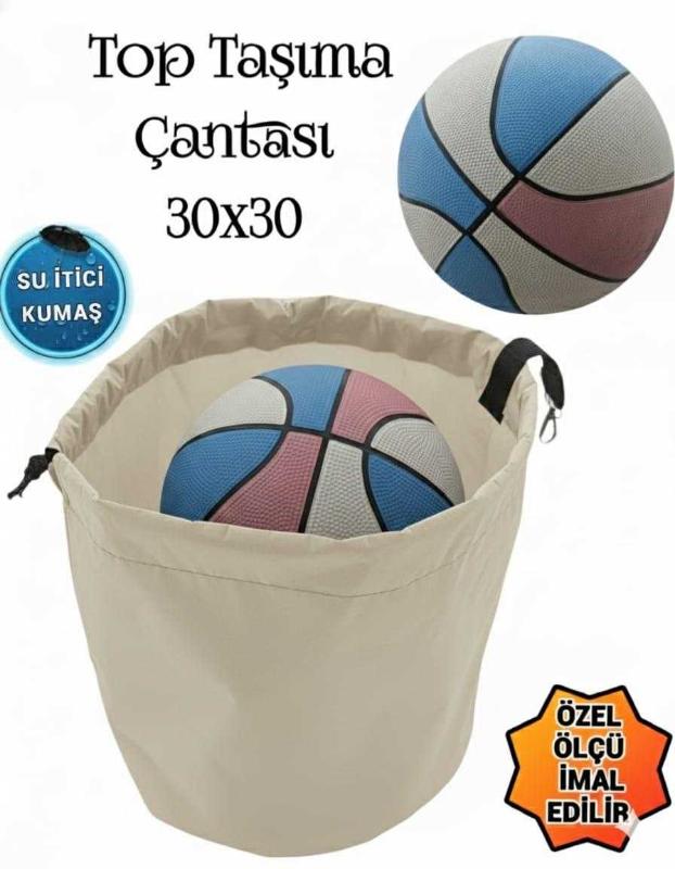 .sevbags top taşıma çantası .su geçirmez ithal kumaştan üretilmiştir .sağlamlık ve uzun ömürlü olması için çift taraf iç ve dış kumaş kullanılmıştır .büzgülü kapama .çantaya kemere ve asılı taşınacak yerler için papağan kanca eklenmiştir .büyük boy top ölçüsü baz alınarak 30x30 ölçülerinde imal edilmiştir .özel ölçü imalat gönderimi yapılmaktadır