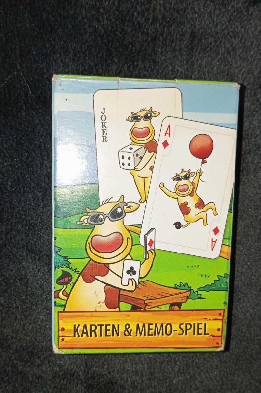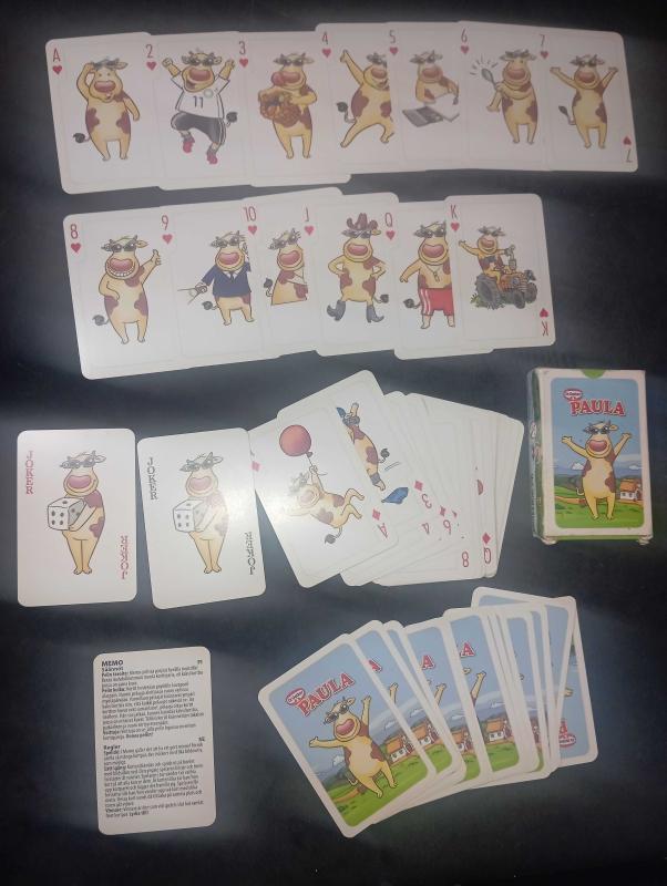 Beyaz zemin üzerinde renkli, eğlenceli inek figürlü oyun kartları seti, joker ve numaralı kartları içerir. Finlandiya imali 54 kart ve kutusundan oluşmakta