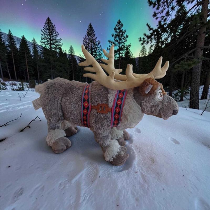 vintage Frozen Karlar Ülkesi karakteri geyik Sven orijinal peluş oyuncak & 45x27 cm başlıklı antika/koleksiyon objesinin menşei belirtilmemiştir. Objenin ait olduğu dönem bilinmeketedir.