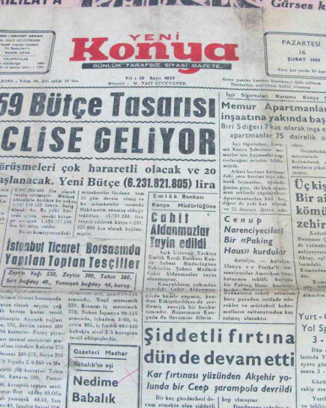 yeni konya gazetesi yıl 10 sayı 4039 1959, en son 7 ay önce güncellenmiştir.