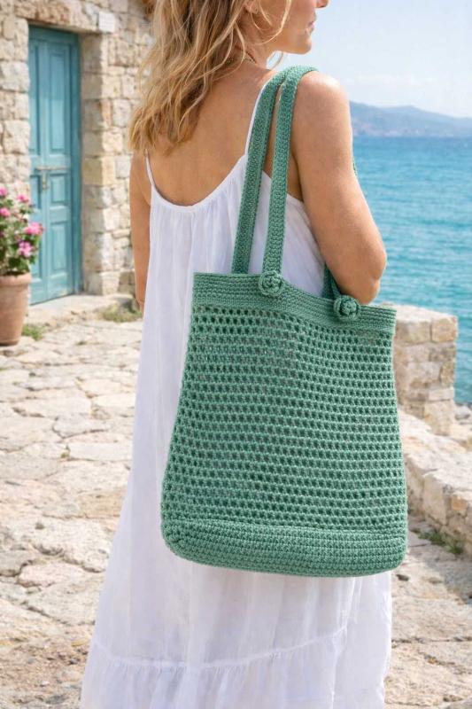 kuzey egenin yeşil tonlarında yeni örülü el işi çanta