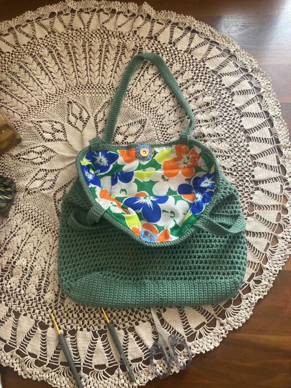 zeytin yeşili örgü çanta yeni başlıklı antika/koleksiyon objesi Türkiye menşe’lidir. 2000 ve sonrası dönemine aittir.