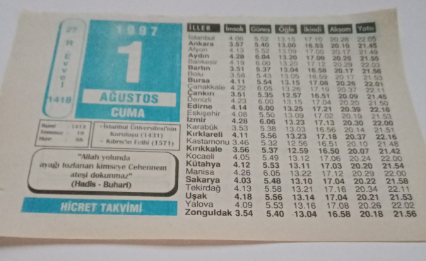 31 Ağustos 1997-Orijinal Takvim Yaprağı-Doğum Günü-Söz,Nişan,Nikâh,Düğün ve Önemli Günler Hediyesi-Hicret Takvimi-Ayet(Hadis)-(Muhamemed İkbal(r.a.))-İmam Buhari'nin Doğumu(869)-Hırsızlık-Mekke'nin Fethi-İbn-i Sina(r.a.)