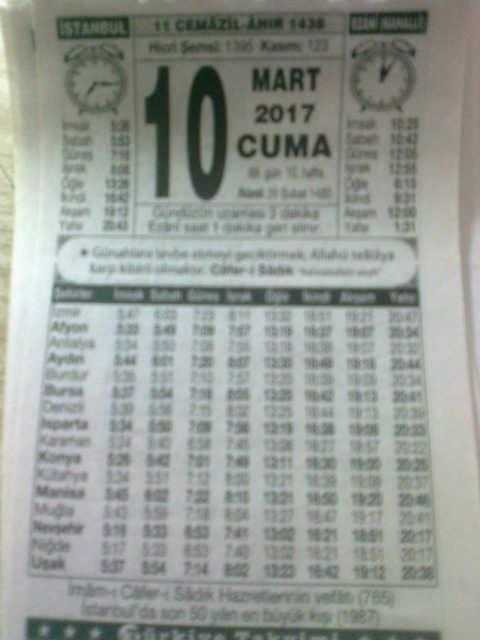 10 mart 2017 takvim yaprağı (türkiye takvimi)