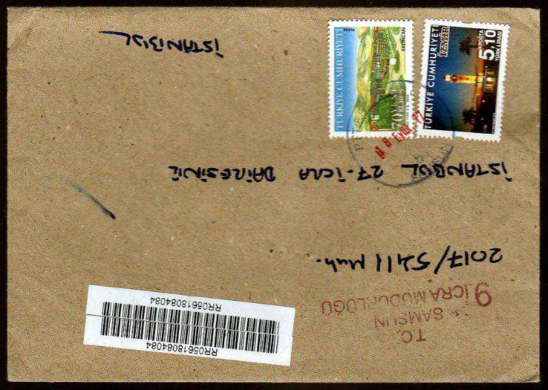 10319 İZMİR VE ERZİNCAN SÜREKLİ İLLERİMİZ PULLU TAHÜTLÜ RESMİ GÖNDERİ
