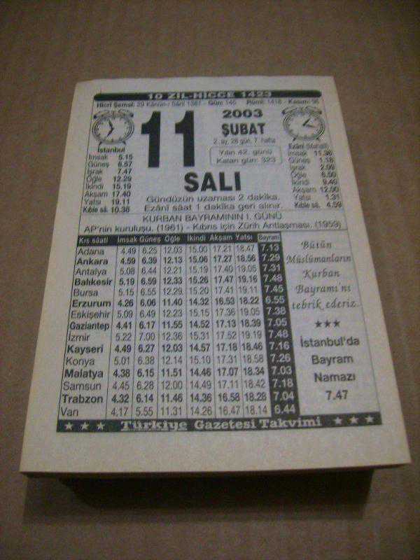 11 şubat 2003 takvim yaprağı (türkiye takvimi)