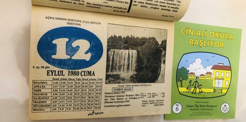 30 Eylül 1980 hediyelik orijinal resimli takvim yaprağı (Cin Ali kitabı hediyeli:)