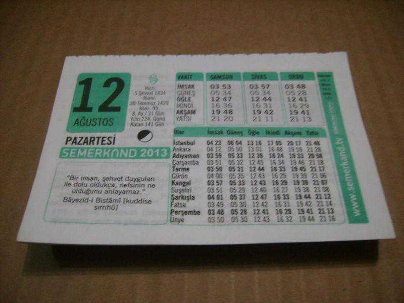 12 ağustos 2013 takvim yaprağı (semerkand takvimi)