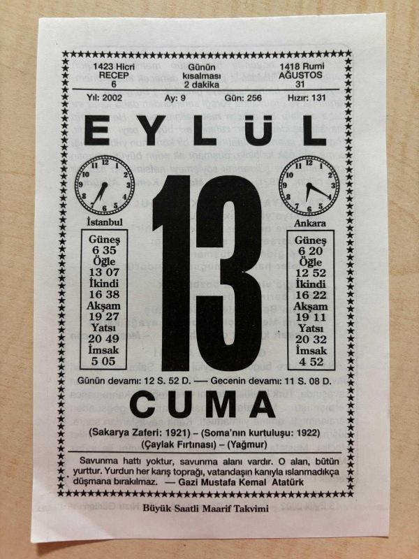 4 EYLÜL 2002 - TAKVİM YAPRAĞI - DOĞUM GÜNÜ HEDİYESİ - BÜYÜK SAATLİ MAARİF TAKVİMİ - GAZİ MUSTAFA KEMAL ATATÜRK - SİVAS KONGRESİ - İNGİLTERE KRAL VIII.EDVARD DOLMABAHÇE'YE GELDİ - EYLÜL AYINDA; MEYVELER - SEBZELER - TARLALAR - AHIR VE KÜMES - BAHÇIVANLIK