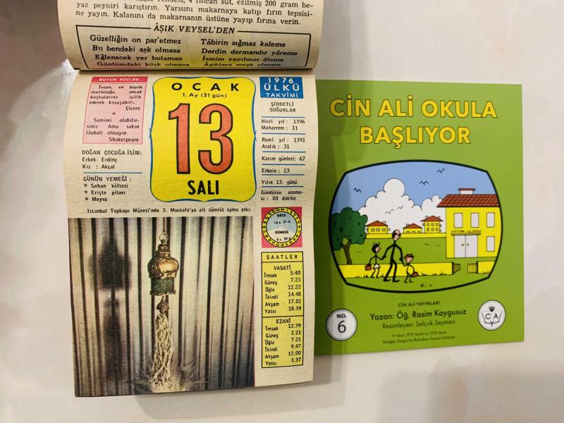 13 Ocak 1976 hediyelik orijinal Ülkü takvim yaprağı (Cin Ali kitabı hediyeli:)