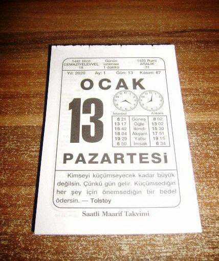 13 MAYIS 2020 - TAKVİM YAPRAĞI - DOĞUM GÜNÜ HEDİYESİ - BÜYÜK SAATLİ MAARİF TAKVİMİ - MERHAMET - 1277 Anadolu'nun en güçlü Türk beyliği olan Karamanoğulları, Türkçe'yi devletin resmi dili olarak kullanan ilk Türk beyliği oldu - 2002 Birleşmiş Milletler'in 4 Ocak 1969'da yürürlüğe soktuğu "Her Türlü Irk Ayrımcılığının Kaldırılmasına Dair Uluslararası Sözleşme" TBMM tarafından onaylandı - 2014 ABD Uzay ve Havacılık Dairesi (NASA) liderliğinde yapılan araştırma, Antarktika'da buzulların geri döndürülemez biçimde eridiğini ve erimeyi hiçbir şeyin engelleyemeyeceğini ortaya koydu - EĞRİ KÖPRÜ - TAZE BAKLA KAVURMASI