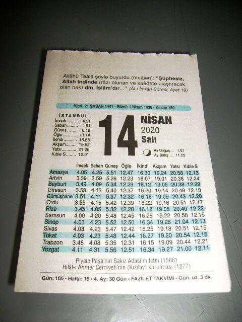 14 nisan 2020 takvim yaprağı (fazilet takvimi)