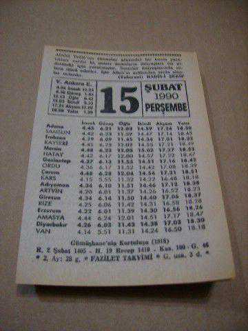 15 şubat 1990 takvim yaprağı (fazilet takvimi)
