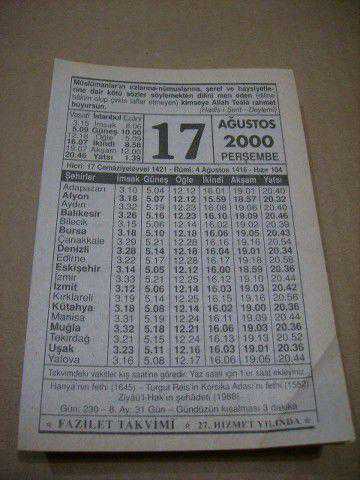 17 ağustos 2000 takvim yaprağı (fazilet takvimi)