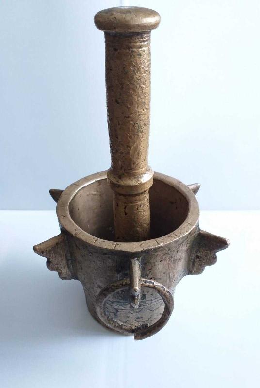 1700'LÜ YILLAR NADİR FORMDA ANTİKA PİRİNÇ HAVAN VE HAVAN ELİ