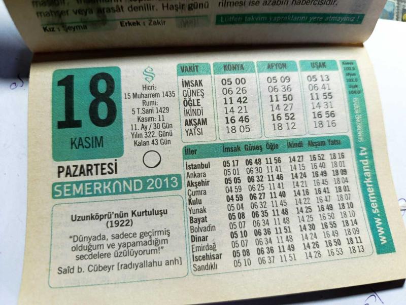 18 KASIM 2013 TAKVİM YAPRAĞI