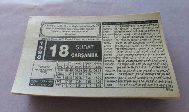18 şubat 1998 takvim yaprağı (hizmet takvimi)
