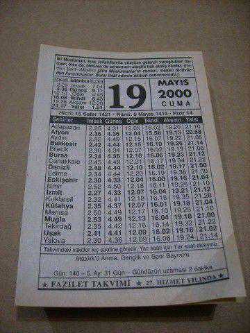 19 mayıs 2000 takvim yaprağı (fazilet takvimi)