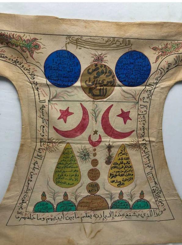 19. yüzyıldan kalma Kur'an ayetleri yazılı büyük beden Osmanlı tılsımlı gömlek (jama)
