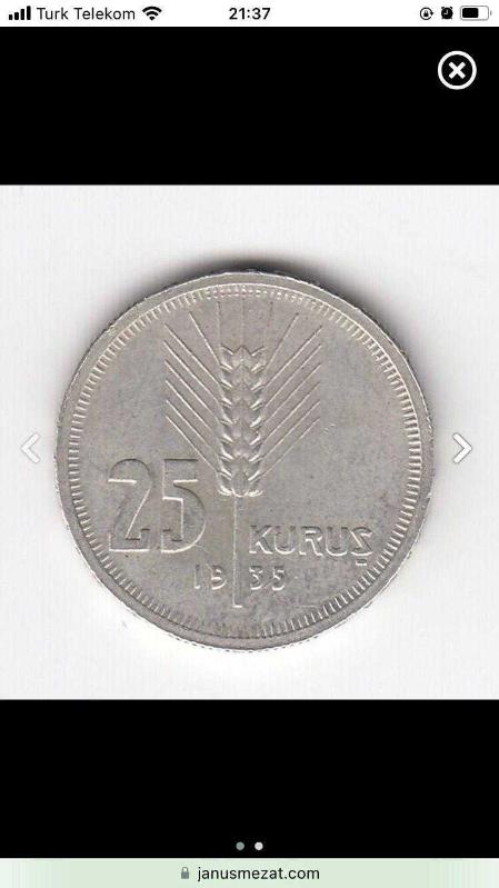 TÜRKİYE 1935 25 KURUŞ GÜMÜŞ 3 GRAM