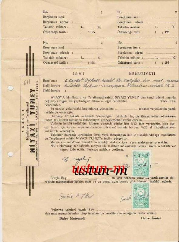 1950 AKASYA MANİFATURA,NİYAZİ YÜNEY SENET...