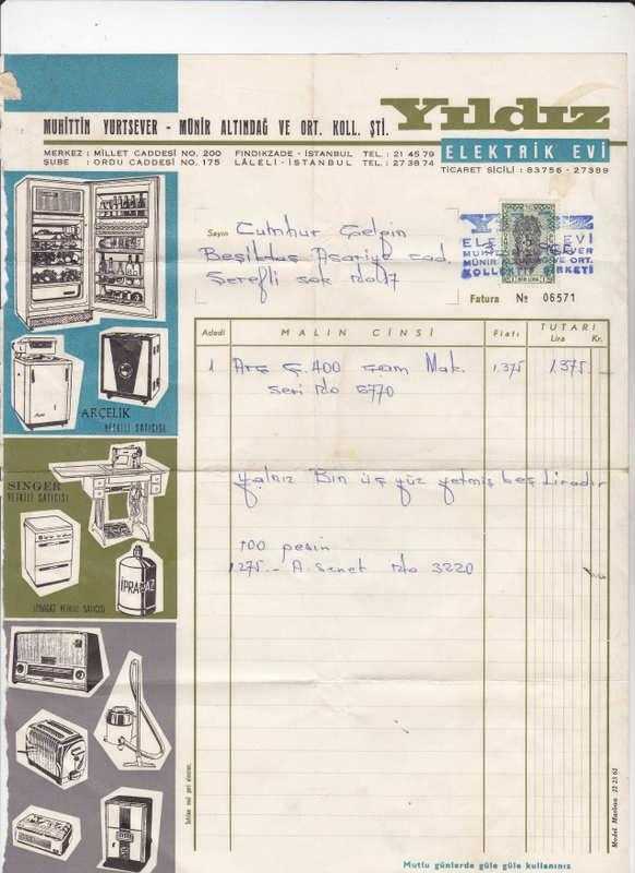 1966 YILDIZ ELEKTRİK EVİ FATURASI