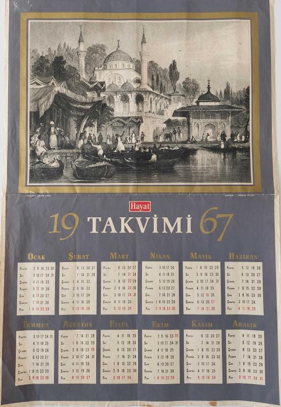 1967 ÜSKÜDAR VALİDE CAMİ FOTOĞRAFLI HAYAT MECMUASI ORİJİNAL DUVAR TAKVİMİ TT1A1A1 ÇOK NADİRDİR
