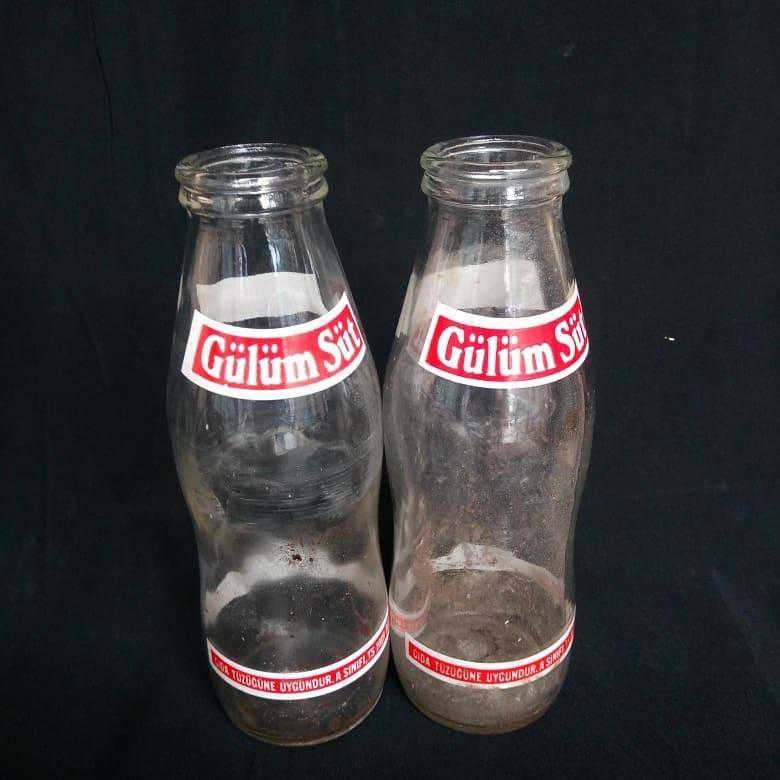 1980's iki adet Gülüm Süt şişesi.