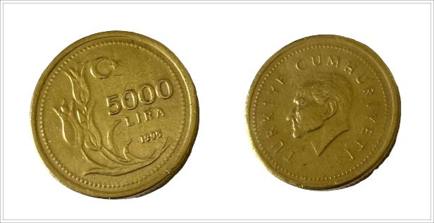 1995 yılı 5000 lira eski madeni para koleksiyon