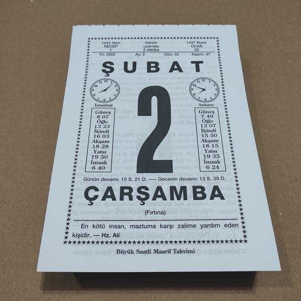 2 şubat 2022 takvim yaprağı (büyük saatli maarif takvimi)