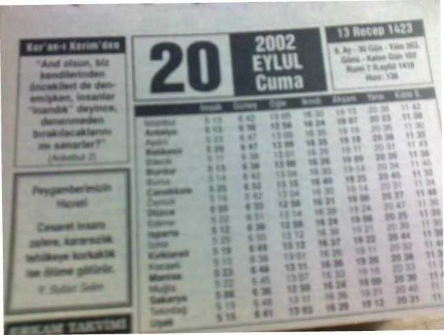 24 EYLÜL 2002 SALI - TAKVİM YAPRAĞI - DOĞUM GÜNÜ HEDİYESİ - FAZİLET TAKVİMİ - PEYGAMBERİMİZ (S.A.V.)'İN MEKKE'DEN HİCRETLE MEDİNE'YE GİRİŞİ (M.622)-UYVAR KALESİ'NİN FETHİ (1663)-HARP OKULU'NUN İSTANBUL'DAN ANKARA'YA NAKLİ (1936)-BOLVADİ'İN KURTULUŞU (1922)-İNSANIN AKRANLARINI BİR BİR KAYBETMESİ