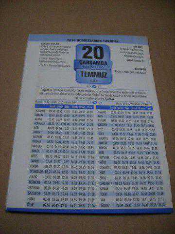 20 temmuz 2016 takvim yaprağı (bediüzzaman takvimi)