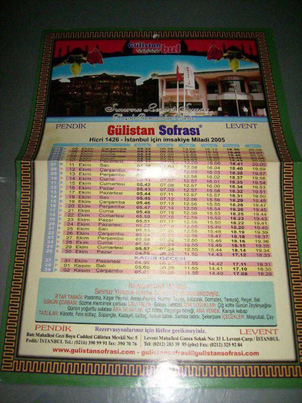 2005 yılı istanbul ili ramazan imsakiyesi gülistan sofrası