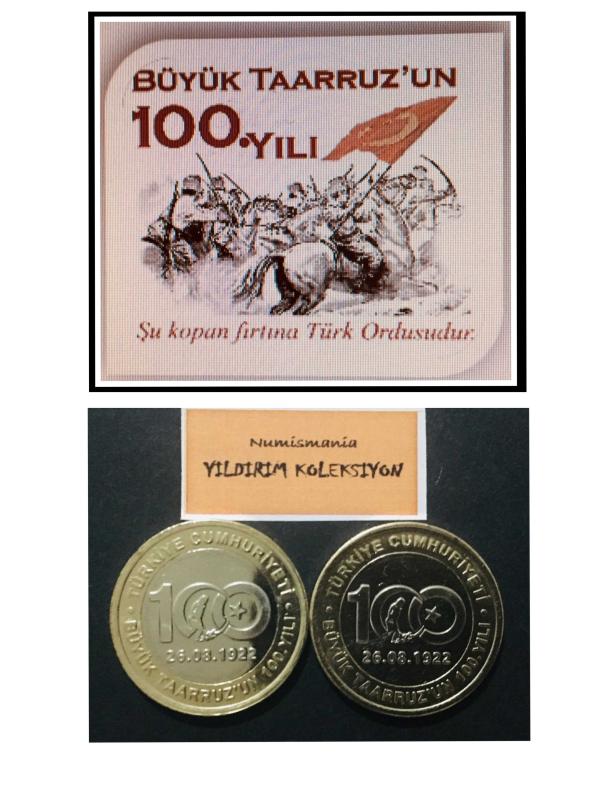 2022 Yılı BÜYÜK TAARRUZ'UN 100.YILI Hatıra Parası ÇİL+ (TCHM2022K) TC TERS/DÜZ TK. “QUADRAN KAPSÜL İÇİNDE”