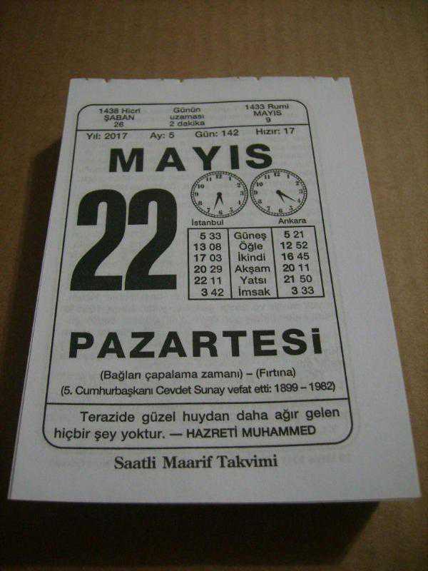 22 mayıs 2017 takvim yaprağı (saatli maarif takvimi)