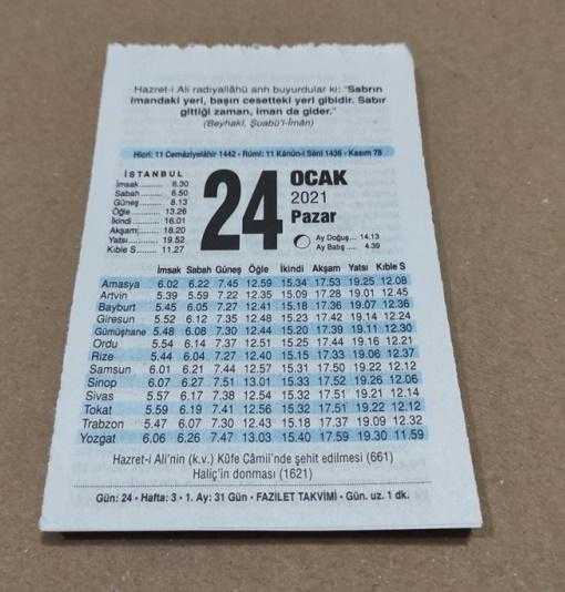 24 ocak 2021 takvim yaprağı (fazilet takvimi)