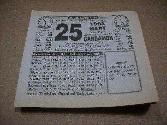 25 mart 1998 takvim yaprağı (türkiye gazetesi takvimi)