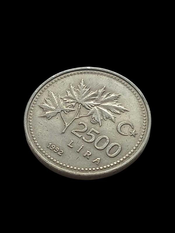 2500 Türk Lirası 1992 Madeni Koleksiyon Para. Antika Koleksiyon Para. Türk Lirası.