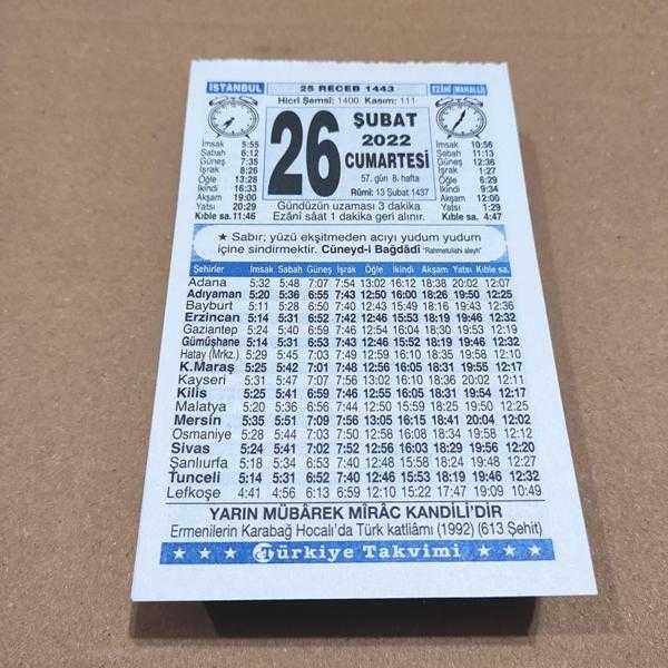 26 şubat 2022 takvim yaprağı (türkiye takvimi)