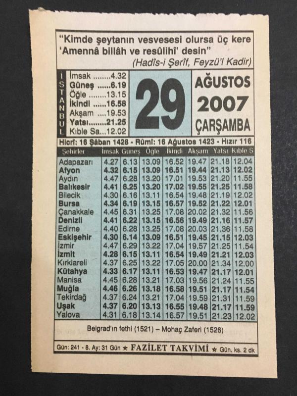 29 AĞUSTOS 2007 -TAKVİM YAPRAĞI-DOĞUM GÜNÜ HEDİYESİ-FAZİLET TAKVİMİ,BELGRAD IN FETHİ 1521,MOHAÇ ZAFERİ 1526,ŞEFAAT,PEYGAMBERİMİZ ÇOCUKLARI KUCAKLAR VE DUA EDERDİ