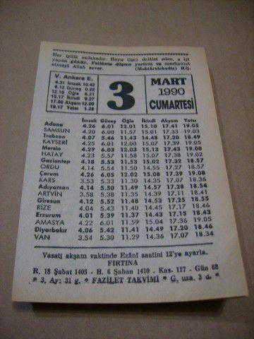 3 mart 1990 takvim yaprağı (fazilet takvimi)