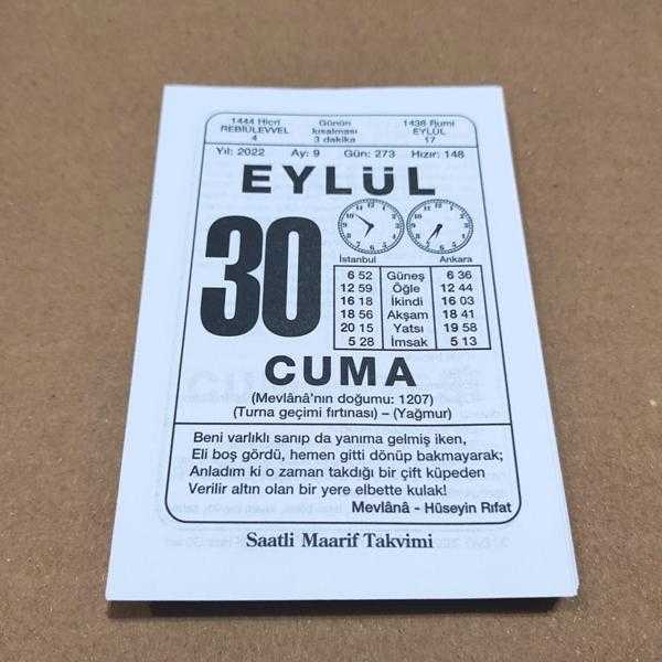 30 eylül 2022 takvim yaprağı (saatli maarif takvimi)