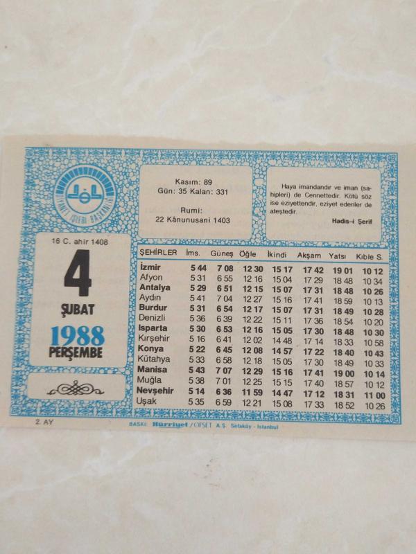 4 ŞUBAT 1988 TAKVİM YAPRAĞI - DOĞUM GÜNÜ HEDİYESİ