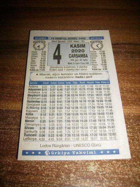 4 kasım 2020 takvim yaprağı (türkiye takvimi)