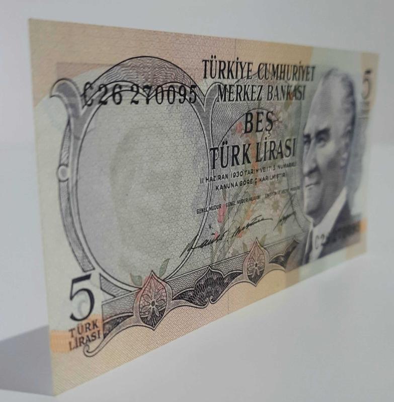 5 Türk Lirası Üç İmzalı 1930 Kanuna Göre Tasarlanmış