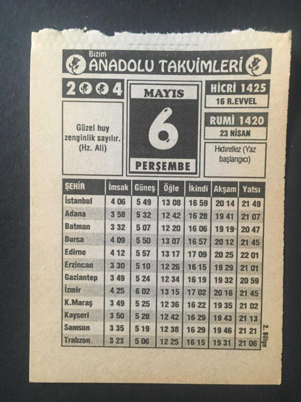 6 MAYIS 2004-TAKVİM YAPRAĞI,DOĞUM GÜNÜ HEDİYESİ-BİZİM ANADOLU TAKVİMLERİ,HIDIRELLEZ YAZ BAŞLANGICI,SELAHADDİN EYYÜBİ