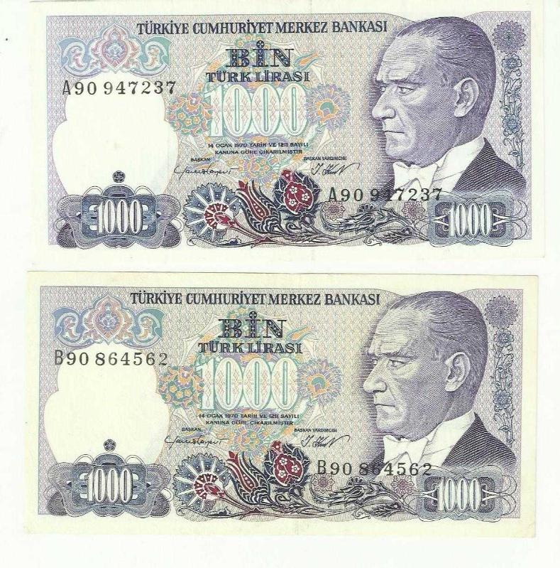 7. EMS A90-B90 1000 LİRA ÇÇT *SON NUMARA* SARI-BEYAZ KAĞIT **NADİR**