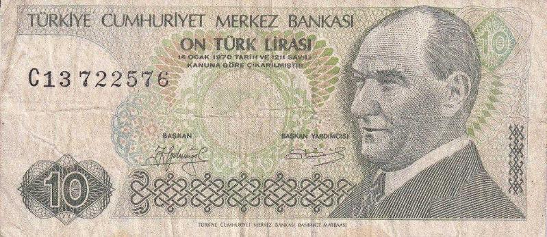 7.Emisyon 1.Tertip 10 Türk Lirası Seri C13 (Uzun Kaş) Temiz TCK6241