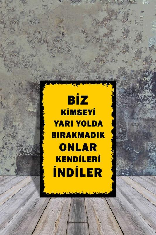AHŞAP POSTER BİZ KİMSEYİ YARI YOLDA BIRAKMADIK ONLAR KENDİLERİ İNDİLER 20X30 CM