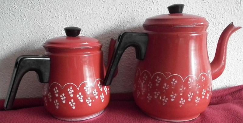 ANTİKA ALİMİNYUM METAL KIRMIZI DEMLİK VE ÇAYDANLIK SIFIR 1970 LER ARKO MARKA